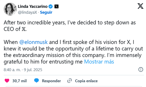 Sin embargo, su margen de maniobra fue limitado por la influencia directa de Musk en las decisiones estratégicas. Su salida marca un nuevo capítulo de incertidumbre en la evolución de la red social.
