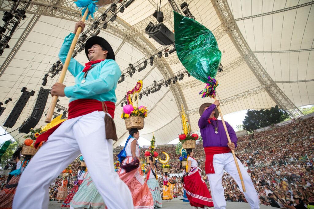 Cada región aportó su esencia, desde los versos pícaros de la Costa hasta el ritual guerrero de la Danza de la Pluma, con sus penachos que giraban como espirales de historia.