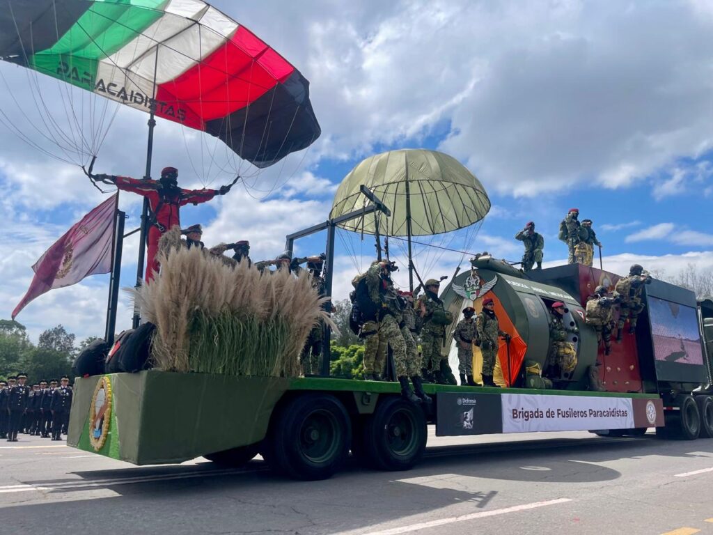 El cielo también será escenario de valentía: cuatro paracaidistas “Mexicas” realizarán un salto magistral desde un helicóptero; entre ellos, una mujer de la Armada de México, quien mostrará que la disciplina y la destreza no tienen género.