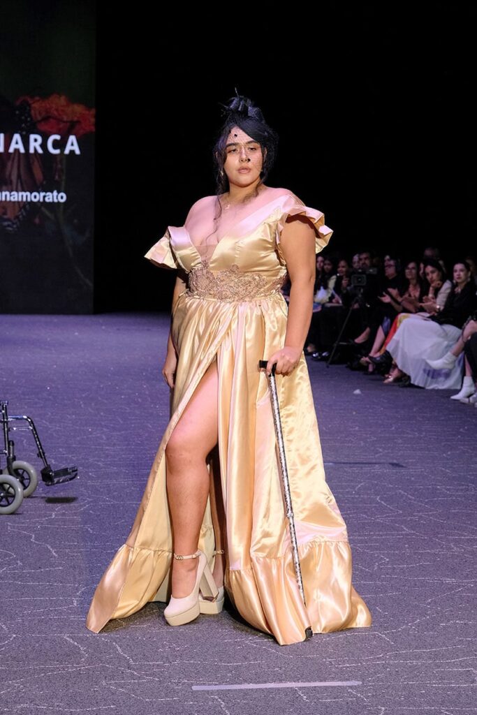 También, participaron tres modelos que llamaron la atención por su confianza y dedicación en la pasarela, una chica que usaba bastón, otra edecán en silla de ruedas, también una participante con debilidad auditiva y una más con síndrome de down, todas comprometidas con su intervención y con su proyecto.