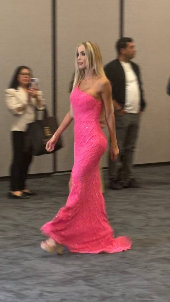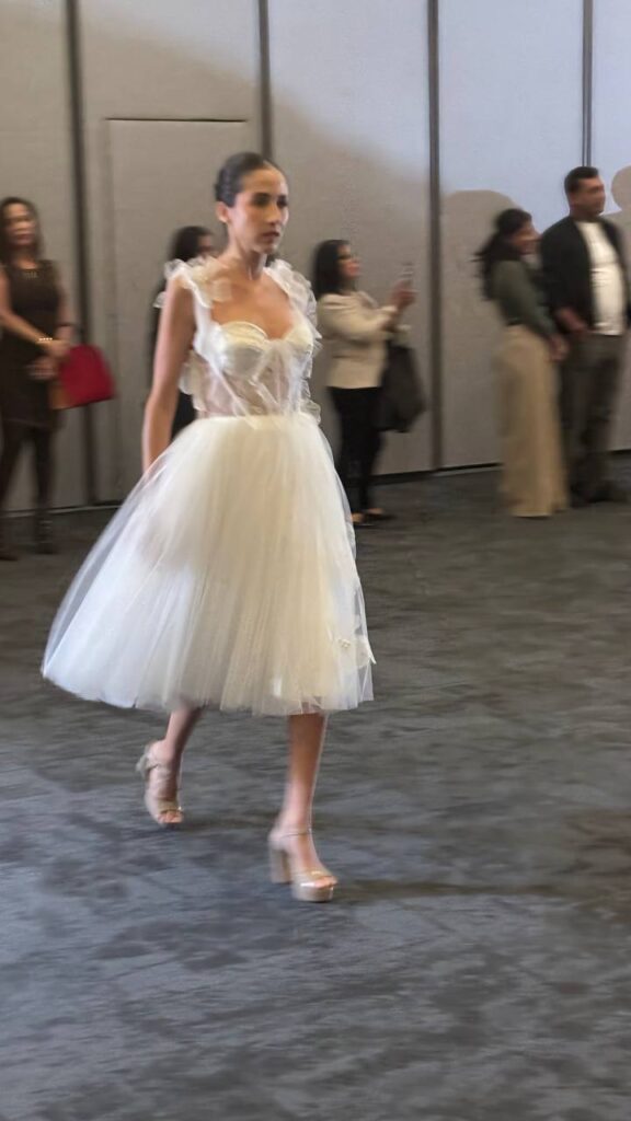 Finalmente, en el día de la inauguración, Eleine, participante de La Casa de los Famosos fue invitada especial y portó un vestido diseñado por la coordinadora del Fashion Leader, Kateryna Olek.