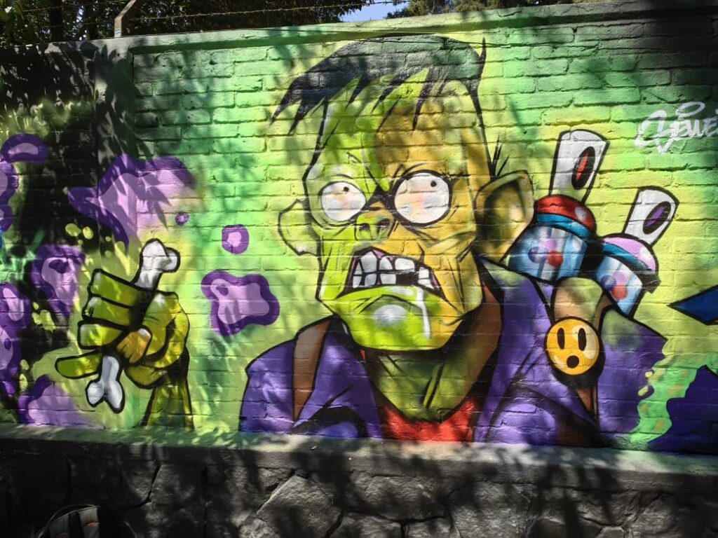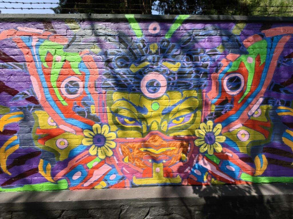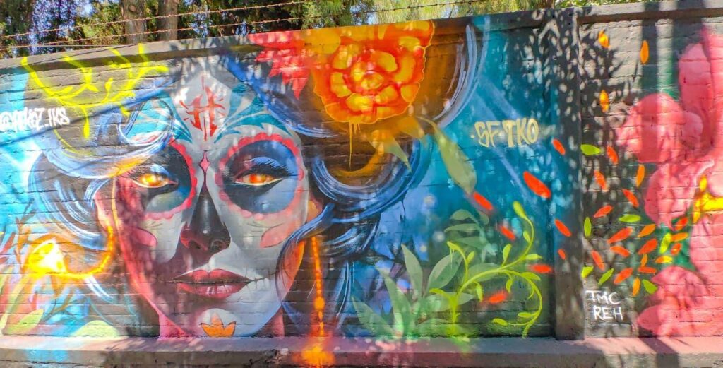 Bajo la iniciativa del alcalde Luis Mendoza, 65 artistas intervinieron más de 220 metros de bardas del panteón con murales y grafitis inspirados en las costumbres mexicanas que honran a los difuntos.
