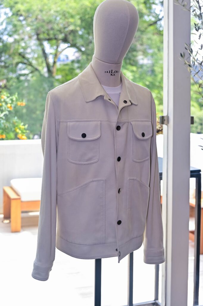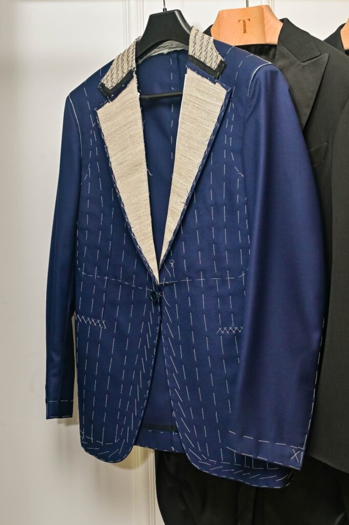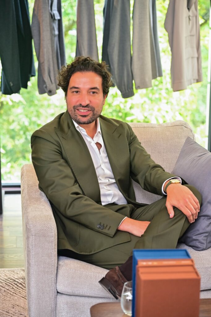 Los clientes participan activamente en el proceso creativo, guiados por sastres expertos que los acompañan en la elección de telas provenientes de las mejores fábricas de Italia e Inglaterra.