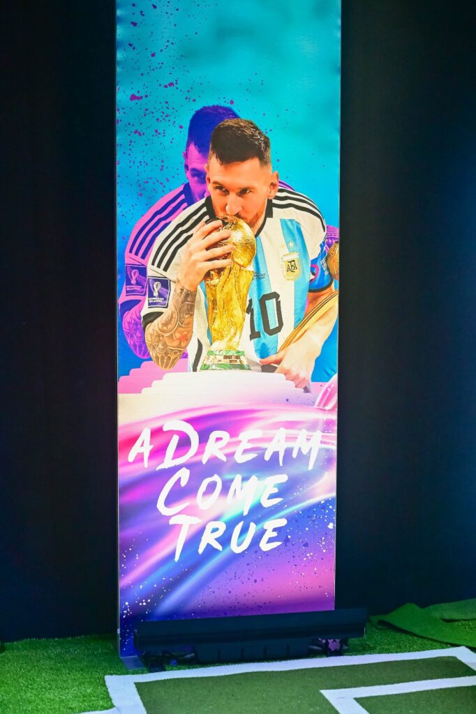 Uno de los momentos más emocionantes llega con la réplica gigante de la Copa del Mundo y la proyección panorámica del épico final en Qatar 2022. Si te emociona recordar aquel penal decisivo, prepárate para revivirlo con sonido envolvente y hasta olor a pasto recién cortado. Además, podrás intentar igualar la zurda de Messi en entrenamientos interactivos o posar con él en una selfie virtual tan real que engaña hasta al VAR.