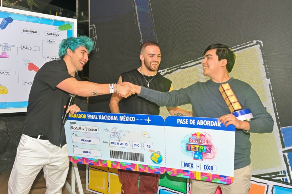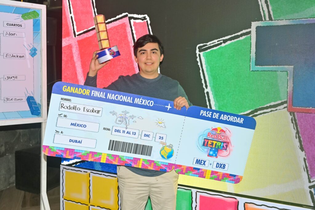La emoción alcanzó su pico cuando los Razo entregaron a Rodolfo su “pase de abordar”: el boleto simbólico que lo llevará directo a Dubai para representar a México en la Final Mundial de Red Bull Tetris.