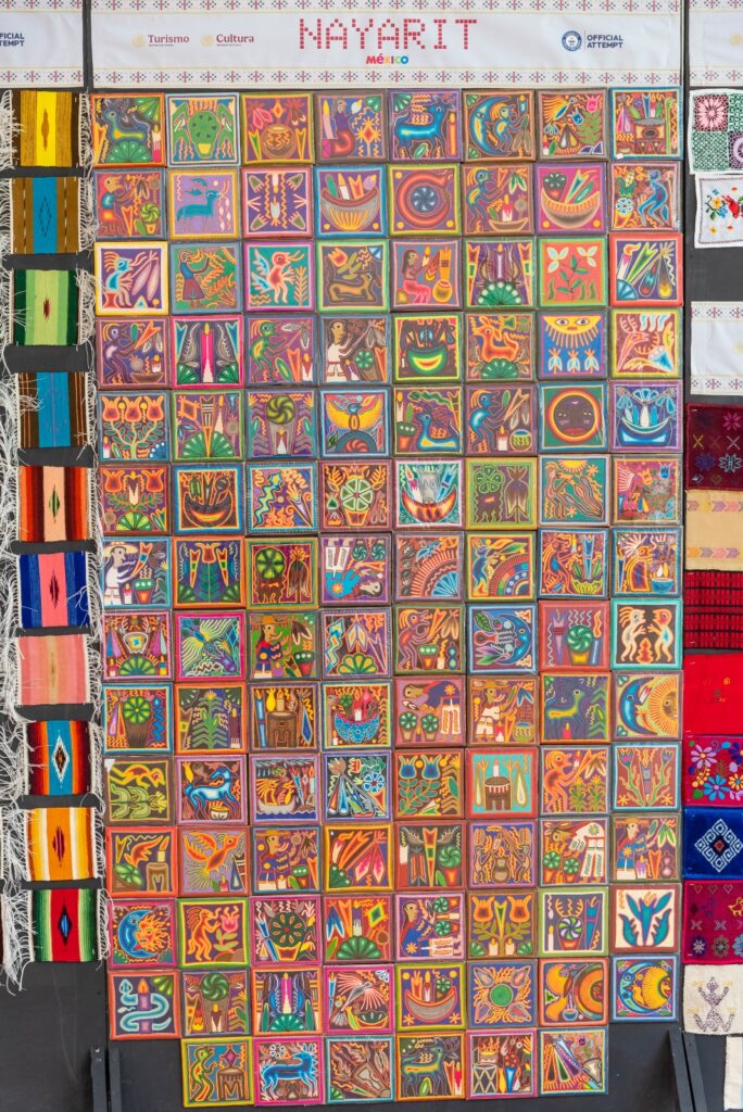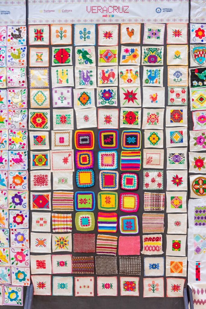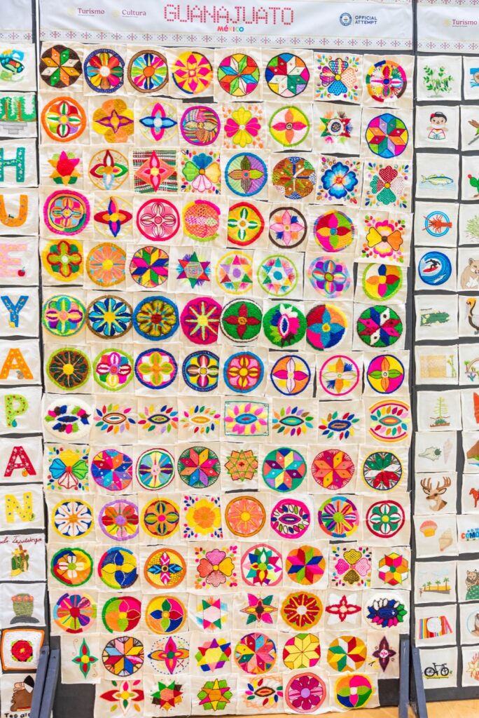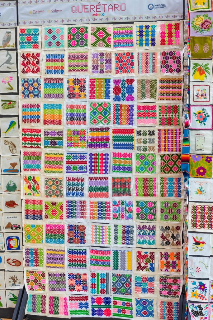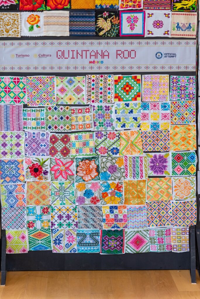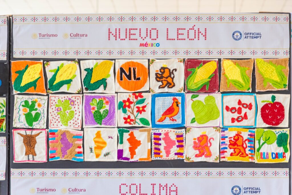 La muestra reúne el talento de más de 200 artesanas y artesanos provenientes de los 32 estados del país, quienes aportaron miles de piezas cargadas de simbolismo por lo que cada lienzo es un fragmento de identidad: flores que evocan territorios, geometrías que narran cosmovisiones y puntadas que resguardan saberes heredados. En conjunto, el tapiz funciona como un mapa emocional de México, donde cada región se reconoce y dialoga con las demás.