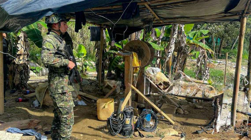 En el lugar fueron ubicados radios y sus cargadores, pistolas, cargas explosivas de fabricación casera, minas y vestimenta usada por los grupos irregulares, según indicó Hernández Lárez en su cuenta de Instagram.