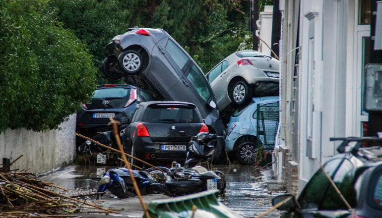 Las inundaciones dañaron casas, tiendas e infraestructura vital, dejaron intransitables muchos caminos e interrumpieron la vida cotidiana en la isla ubicada en el noreste de Grecia, informó la radiodifusora nacional griega ERT.
