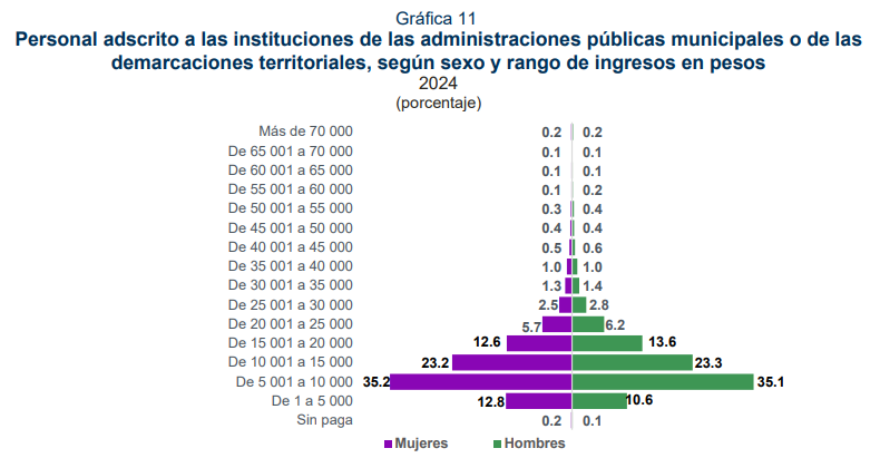 Asimismo, la brecha salarial entre hombres y mujeres muestra una reducción, habiendo así una mayor paridad en el sueldo del personal adscrito a las Presidencias Municipales o Alcaldías que conforman la República Mexicana.